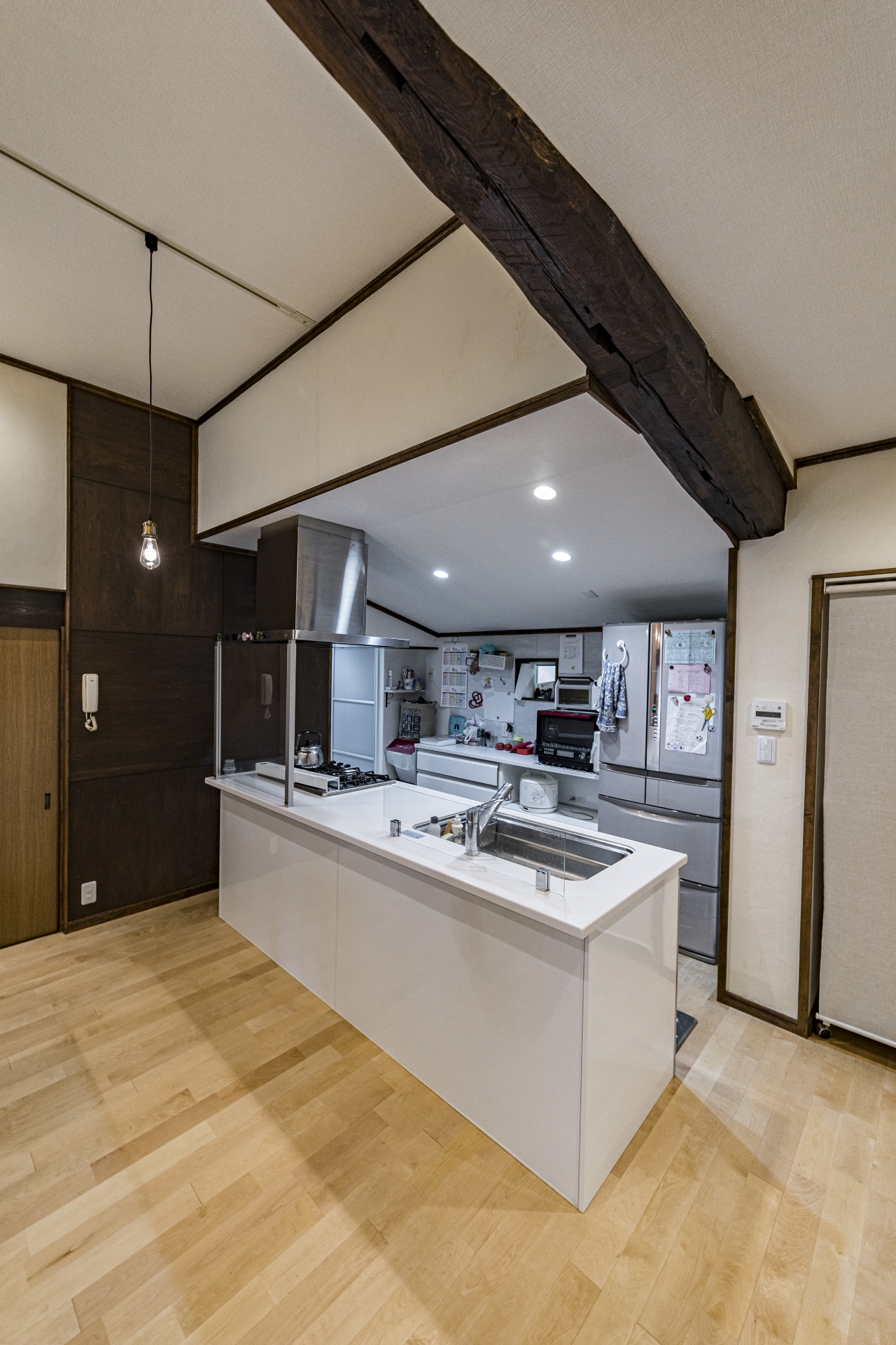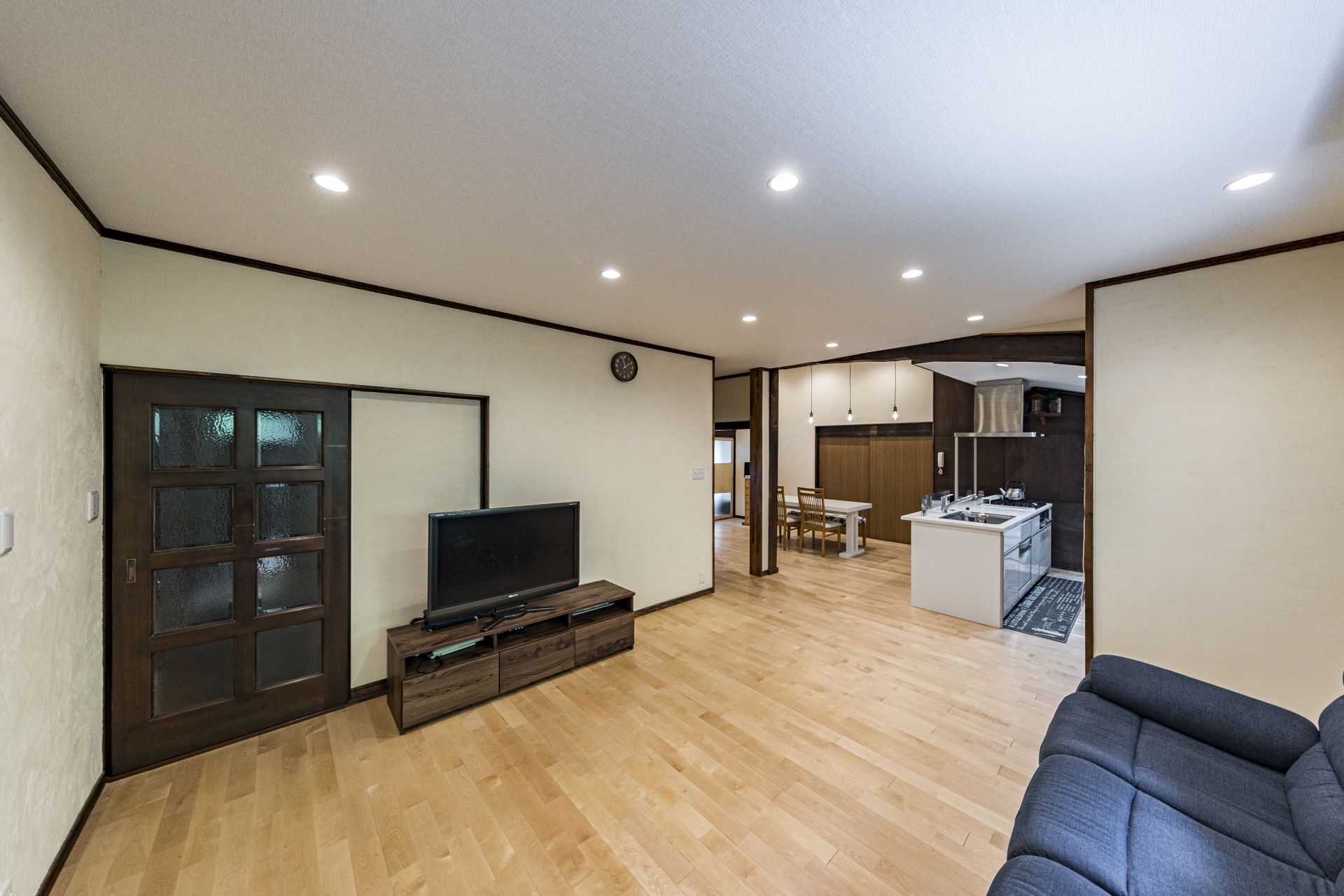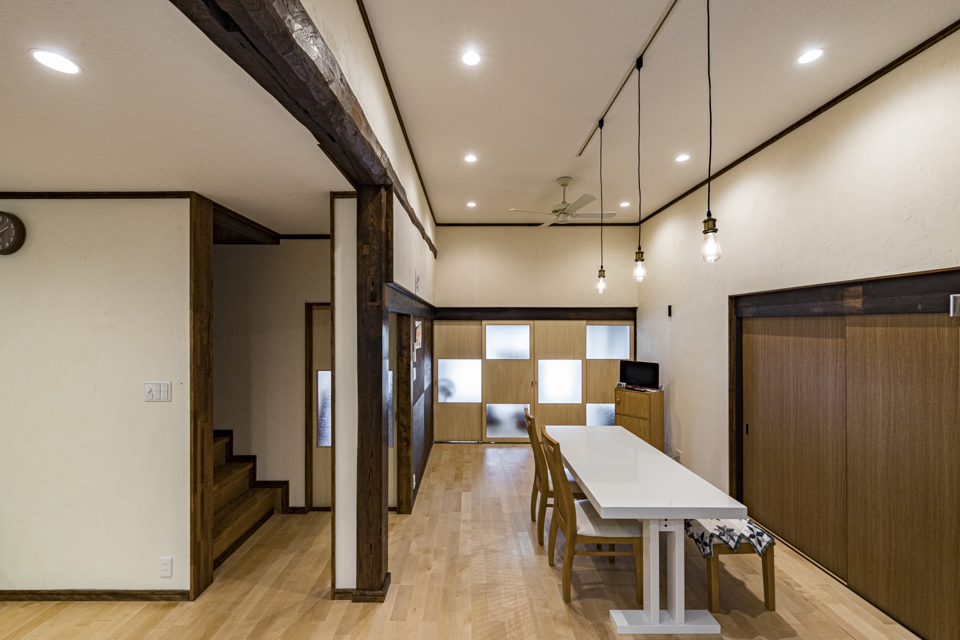 古民家ならではの田の字でしたが間仕切りを減らすことで家族団欒の場所を確保。