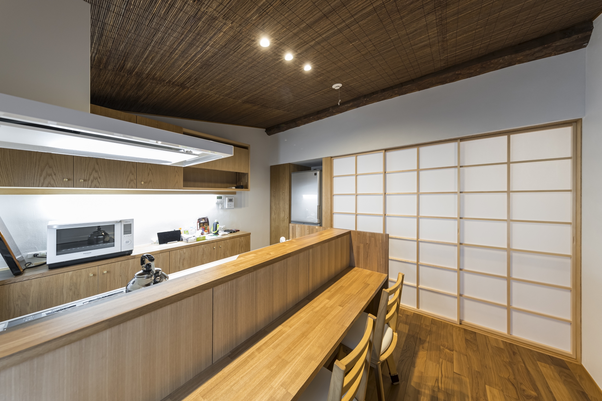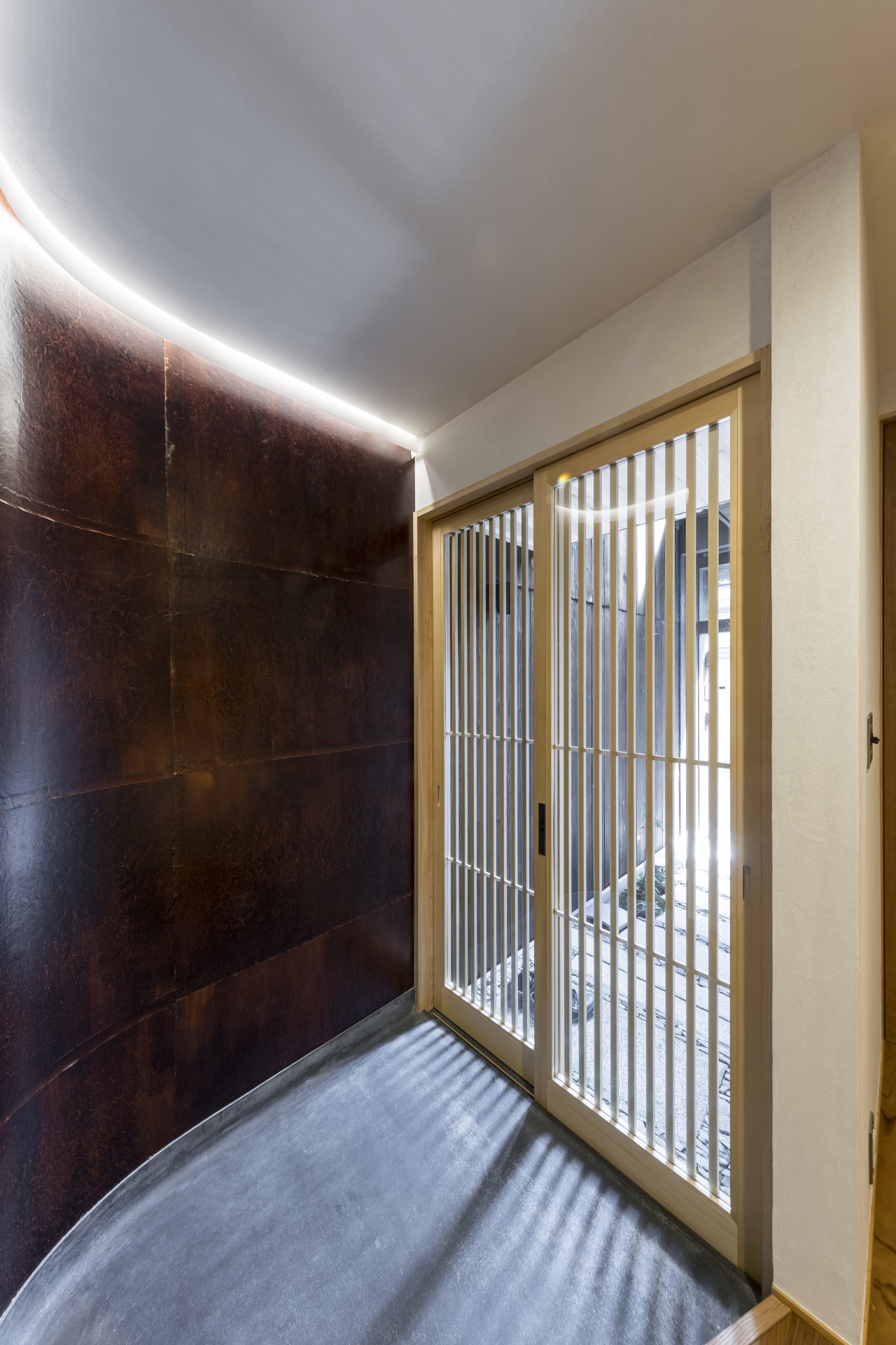 玄関からの採光が少なかったため通り土間〜玄関など京都らしい玄関にしました。