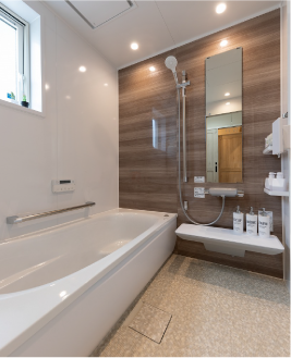 きれいなバスルームで、日々の疲れを癒やすとっておきの時間を過ごしたい どの年代の方でも使いやすく、掃除もしやすい。そんな浴室計画を ご提案いたします。